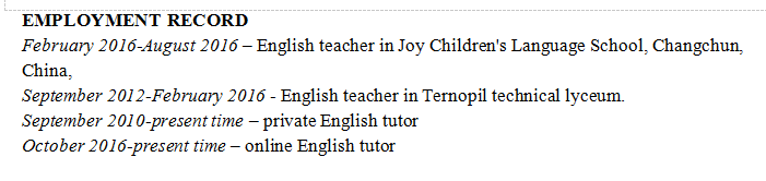 國(guó)籍: 烏克蘭       求職意向: 教師