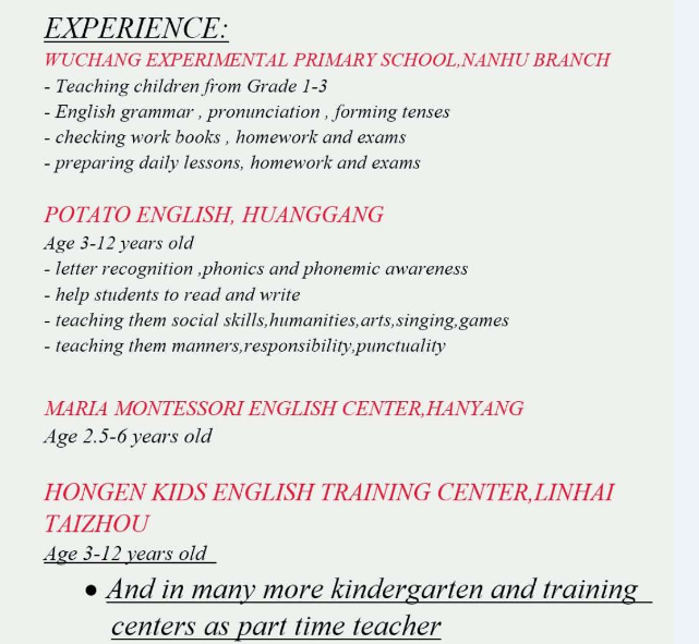 國(guó)籍: 哥倫比亞 求職意向: 教師