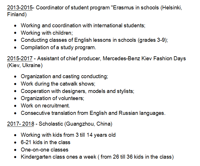 國(guó)籍: 烏克蘭 求職意向: 教師