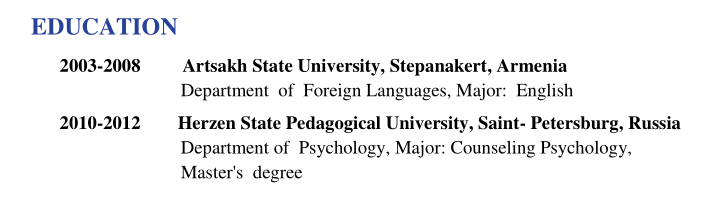 亞美尼亞, 英語本科,心理學碩士, 在做認證, 求職可以辦理工簽學校
