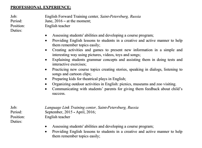 國(guó)籍: 俄羅斯 求職意向: 教師