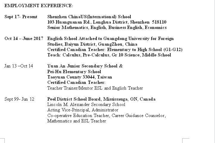 加拿大, 理科專(zhuān)業(yè), 求職數(shù)學(xué), 有經(jīng)驗(yàn),初高中都可以, 現(xiàn)在在深圳, 可以轉(zhuǎn)聘, |