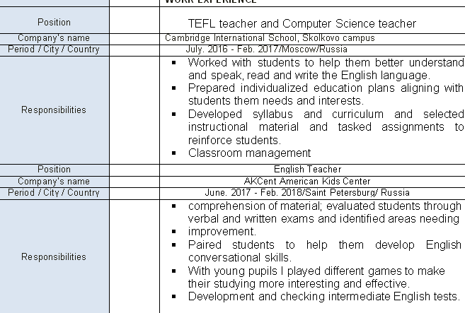 國(guó)籍: 俄羅斯 求職意向: 教師