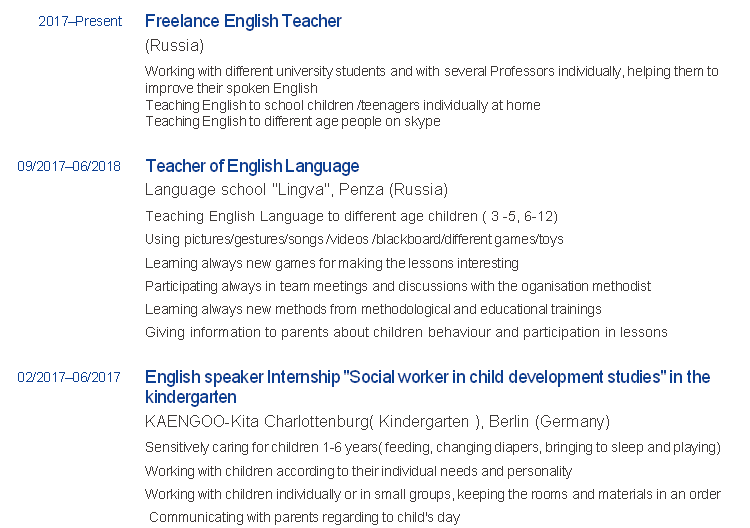 國籍: 俄羅斯 求職意向: 教師
