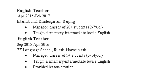 國(guó)籍: 俄羅斯 求職意向: 教師