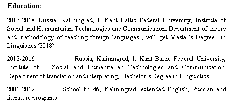 國籍: 俄羅斯 求職意向: 教師