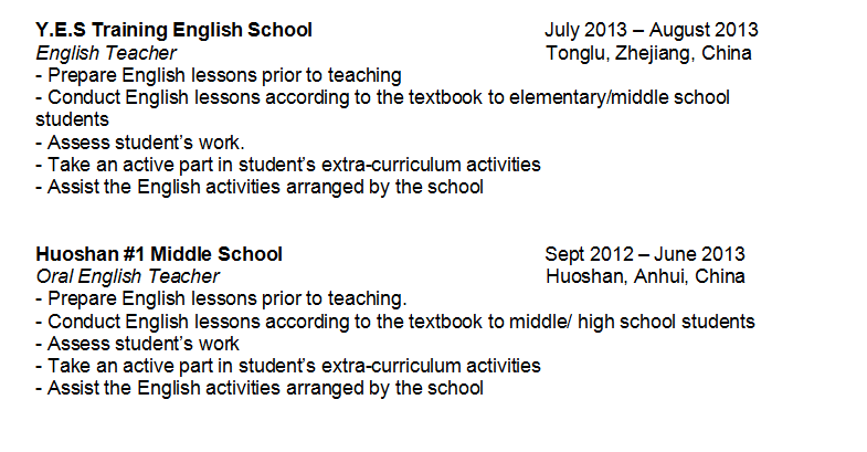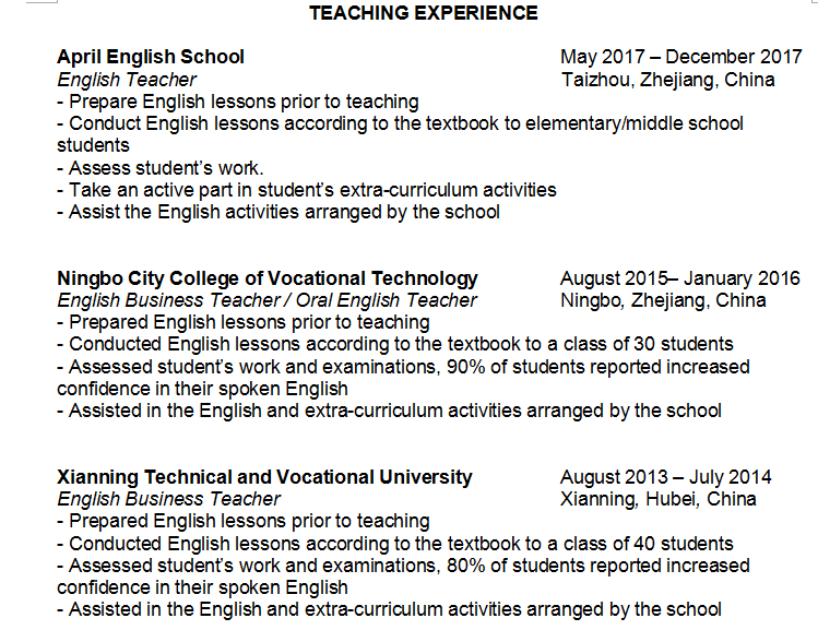 國籍: 其他 求職意向: 教師