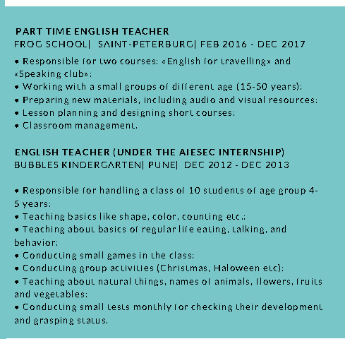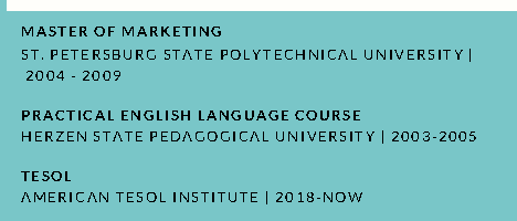 國籍: 俄羅斯 求職意向: 教師