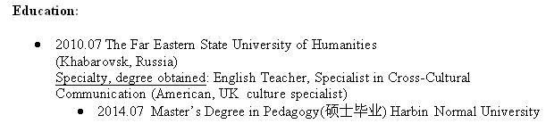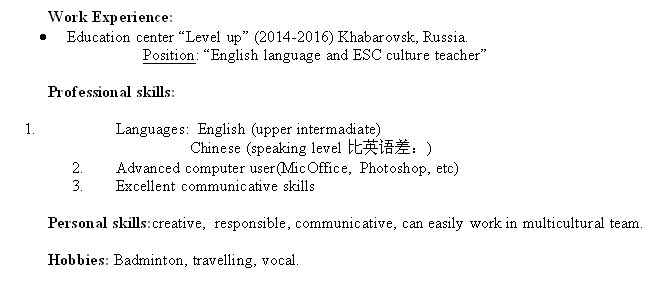 國(guó)籍: 俄羅斯 求職意向: 教師