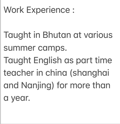 國籍: 其他 求職意向: 教師