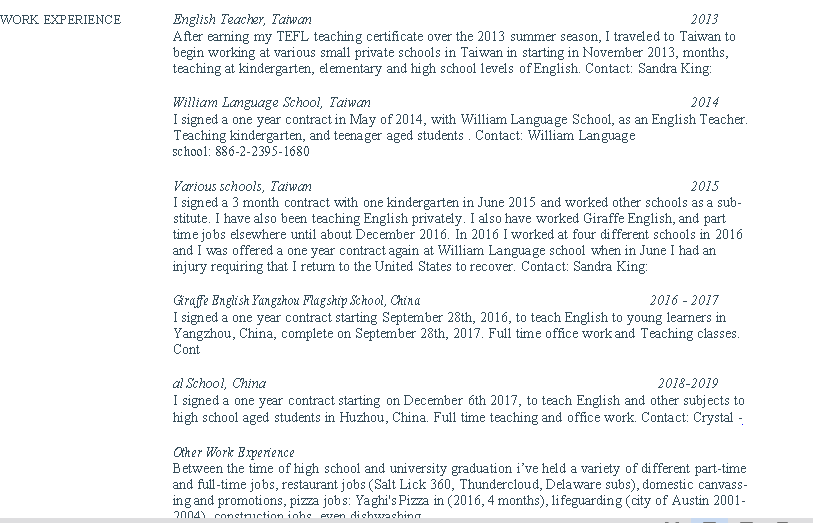 國籍: 其他 求職意向: 教師