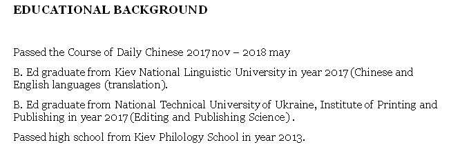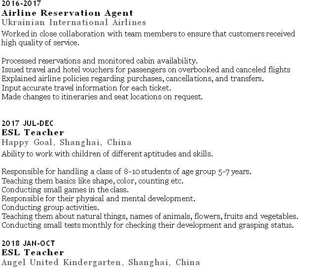 國籍: 俄羅斯 求職意向: 教師