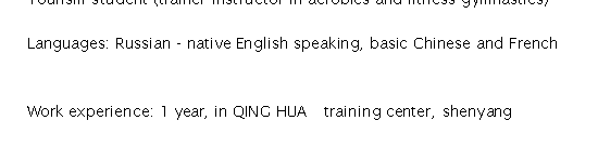 俄羅斯,在本國辦理簽證,遼寧大學畢業(yè), 有經(jīng)驗 |