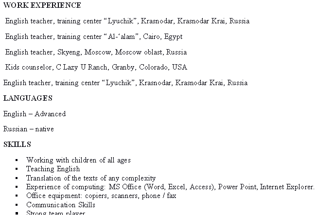 國籍: 俄羅斯 求職意向: 教師