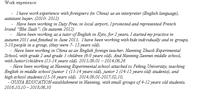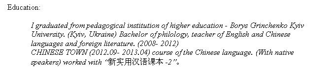 國籍: 俄羅斯 求職意向: 教師
