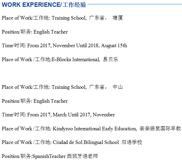 國(guó)籍: 烏克蘭 求職意向: 教師
