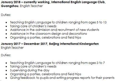 國籍: 其他 求職意向: 教師