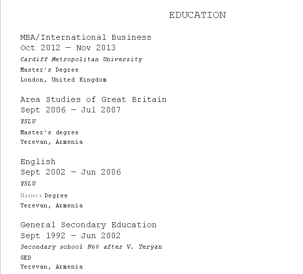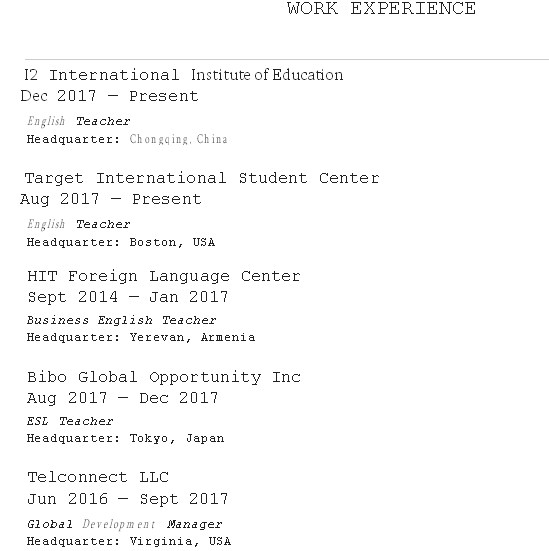 亞美尼亞, 在中國, 工簽轉(zhuǎn)聘, 2個碩士學(xué)位, 其中一個英國的碩士學(xué)位,主修商務(wù)英語,求職1月份 上海職位。需要工簽轉(zhuǎn)聘 。 很優(yōu)秀 |