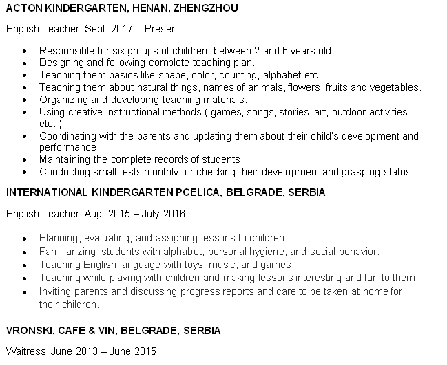 國(guó)籍: 塞爾維亞 求職意向: 教師
