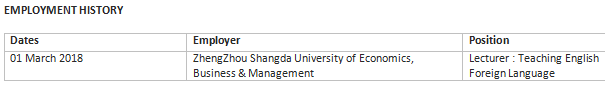 學(xué)歷: 本科 期望薪資: 3000-4000(Yuan/M)