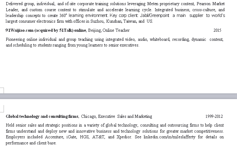 美國, 在上海海, 符合工簽條件, 本科, tefl , 現(xiàn)在10年商務(wù)到2027年, 城市喜歡: Shanghai, Jiangsu, Anhui, Dalian, 其他也考慮, 偏向大孩子??梢越藺P ,IB 課程 , 經(jīng)驗(yàn)20多年。 |
