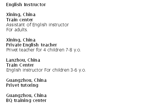 國(guó)籍: 未知 求職意向: 教師