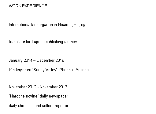 塞爾維亞女 在北京 旅游簽證 L求職南方在準(zhǔn)備工簽 , 可以先到校, 之后辦理簽證,發(fā)音標(biāo)準(zhǔn), 經(jīng)驗豐富, 本科 |