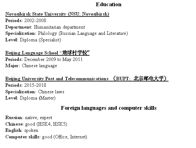 國(guó)籍: 俄羅斯 求職意向: 教師