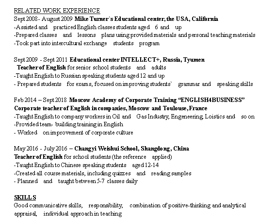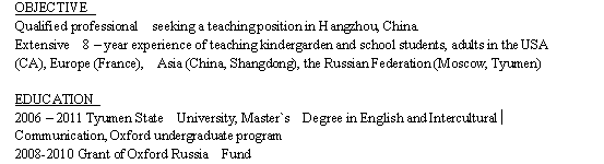 國(guó)籍: 俄羅斯 求職意向: 教師
