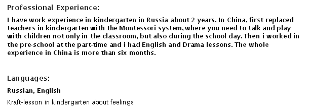 國籍: 俄羅斯 求職意向: 教師