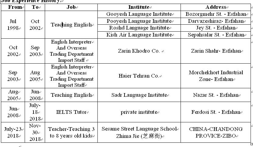 ·        More than 16 years of teaching experience in different levels and 3 years of being an interpreter.