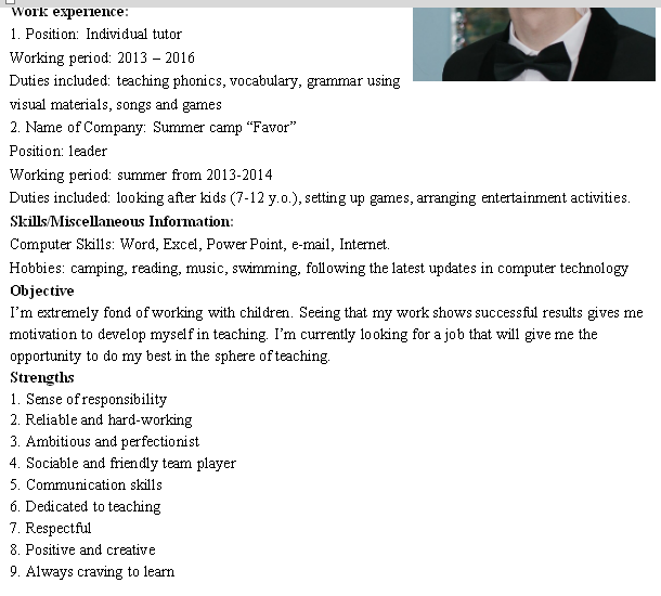 國(guó)籍: 烏克蘭 求職意向: 教師