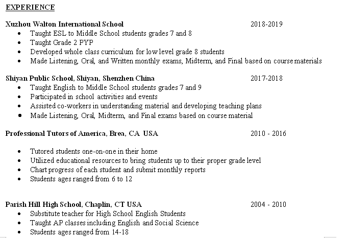 美國, 本科tefl 經(jīng)驗都有, 工簽轉(zhuǎn)聘在7月, 求職25k工作, 經(jīng)驗14年, 可以教英語,文學,社會科學,社會學,政治學,人文科學 和AP 學科, |
