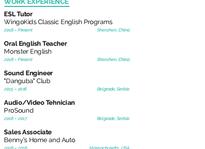 國籍: 塞爾維亞 求職意向: 教師