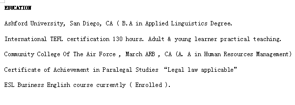 國籍: 其他 求職意向: 教師