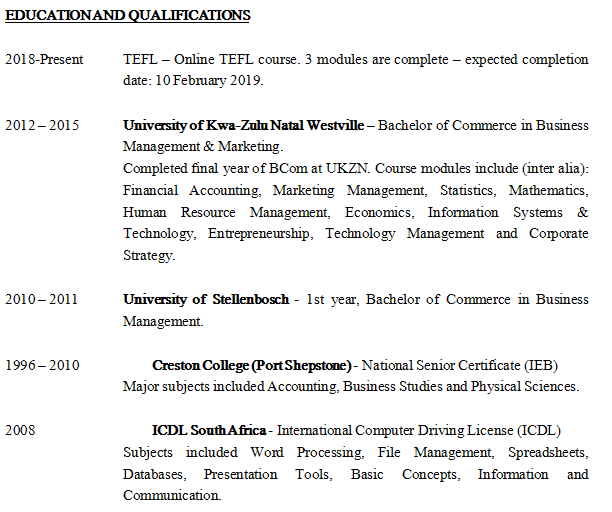 國(guó)籍: 南非 求職意向: 教師