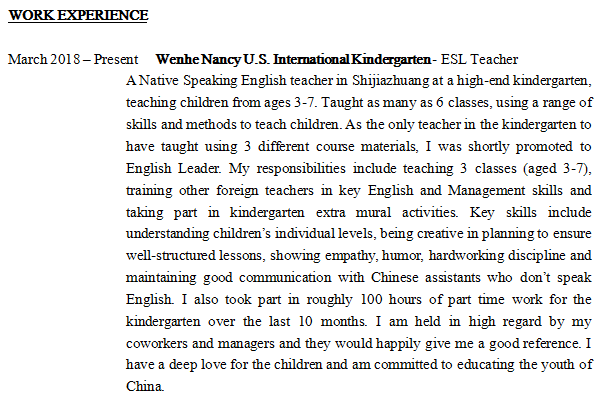 國(guó)籍: 美國(guó) 求職意向: 教師