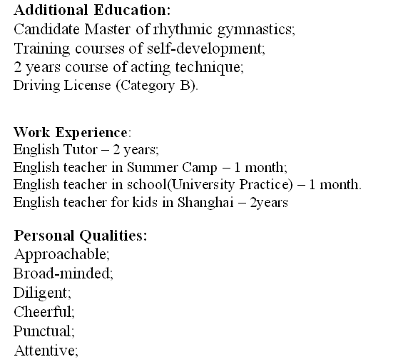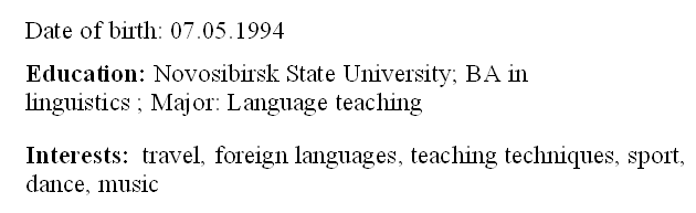 國籍: 俄羅斯       求職意向: 教師