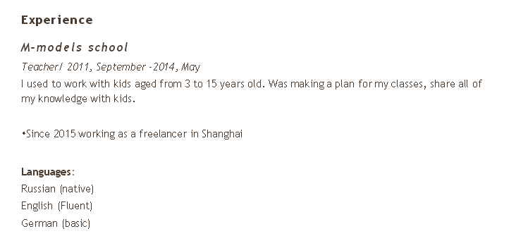 國(guó)籍: 俄羅斯 求職意向: 教師