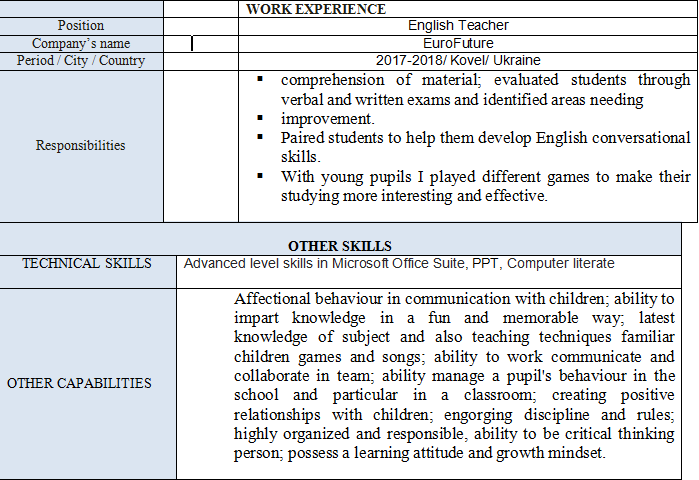 國(guó)籍: 烏克蘭 求職意向: 教師