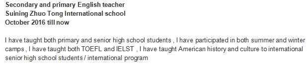 國(guó)籍: 美國(guó) 求職意向: 教師