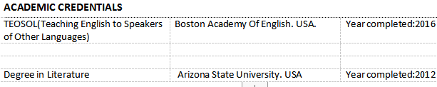 國(guó)籍: 哥倫比亞 求職意向: 教師