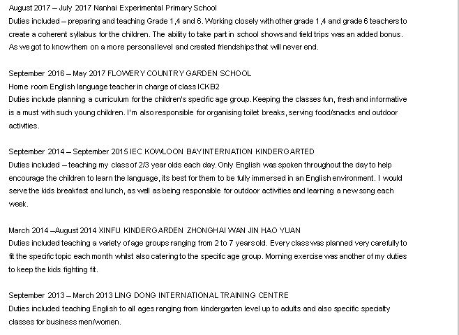 國(guó)籍: 英國(guó) 求職意向: 教師