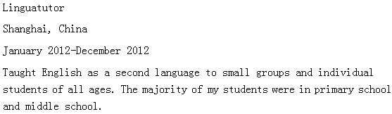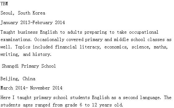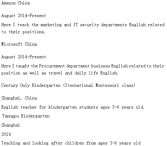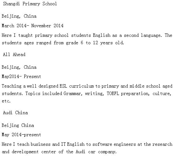 國(guó)籍: 美國(guó) 求職意向: 教師