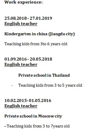 國籍: 俄羅斯 求職意向: 教師