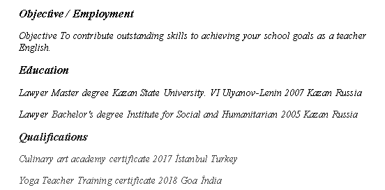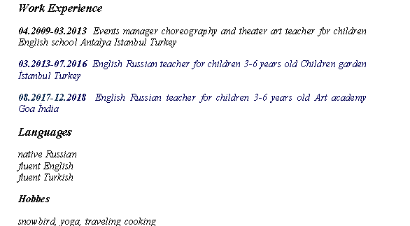 國籍: 俄羅斯 求職意向: 教師