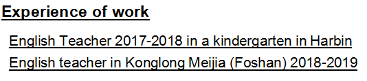 國籍: 其他 求職意向: 教師