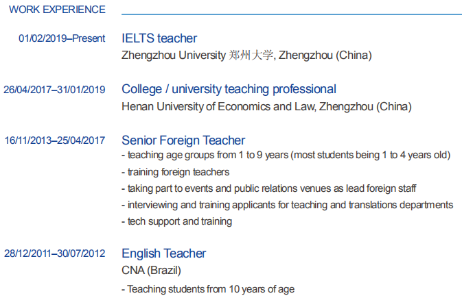 國籍: 其他 求職意向: 教師