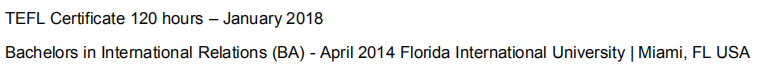 非常優(yōu)秀美國女外教,美國女外教Irisarri,現(xiàn)在美國邁阿密,有本科有TEFL證書,工簽資料已經(jīng)認(rèn)證,求職9月份廈門,廣州職位。薪資19k+加住宿。