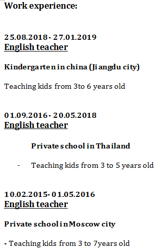 國籍: 俄羅斯 求職意向: 教師